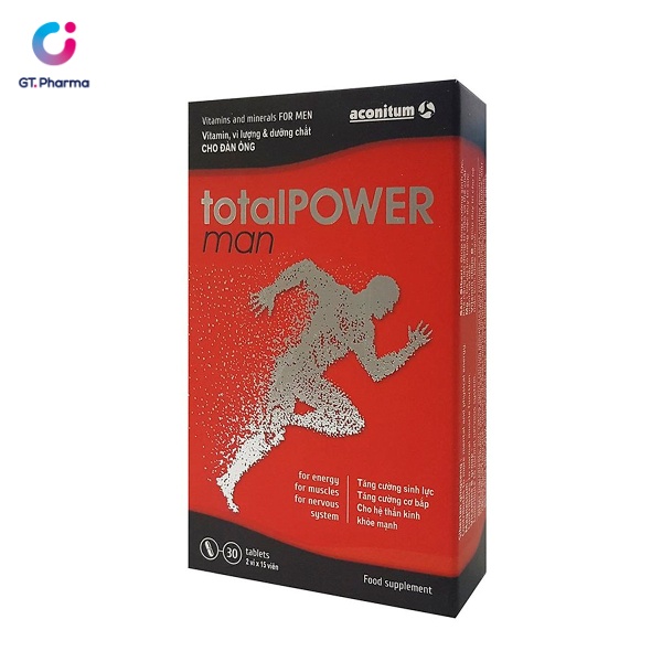 Viên uống Total Power Man là sản phẩm vitamin tổng hợp cung cấp năng lượng toàn diện cho nam giới. Được nhập khẩu trực tiếp từ Châu Âu, Total Power Man không chỉ đảm bảo đầy đủ dưỡng chất thiết yếu cho cơ thể mà còn giúp nam giới duy trì sức khỏe, sự cường tráng, chất lượng tinh trùng.