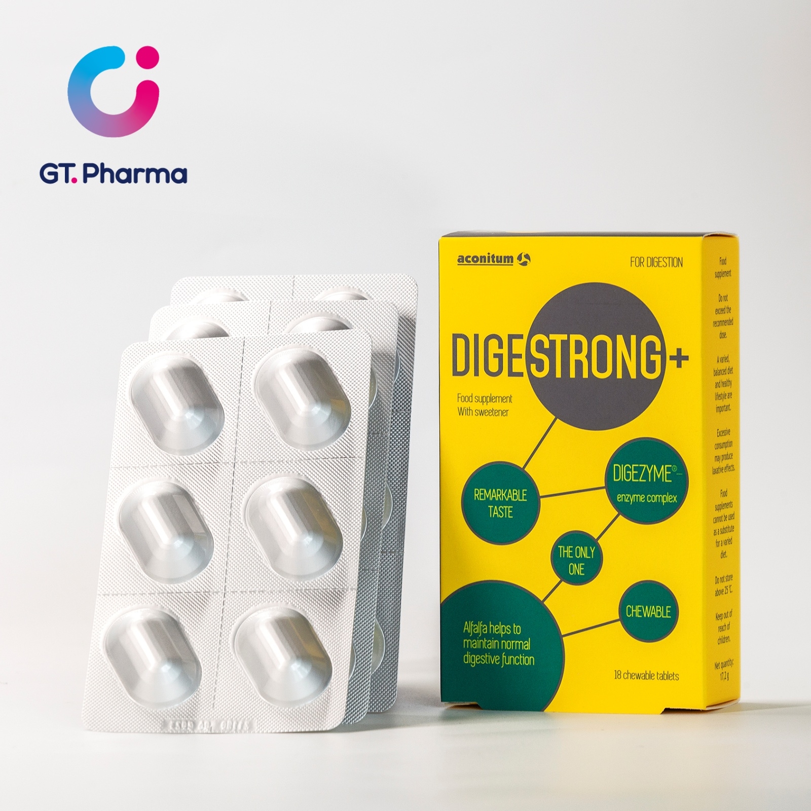 Men tiêu hóa Digestrong+ chính hãng chứa 100% tinh chất thiên nhiên, nguồn gốc thực vật, được bào chế dạng viên nhai mùi vị thơm ngon và sử dụng sau bữa ăn để cải thiện tiêu hóa.