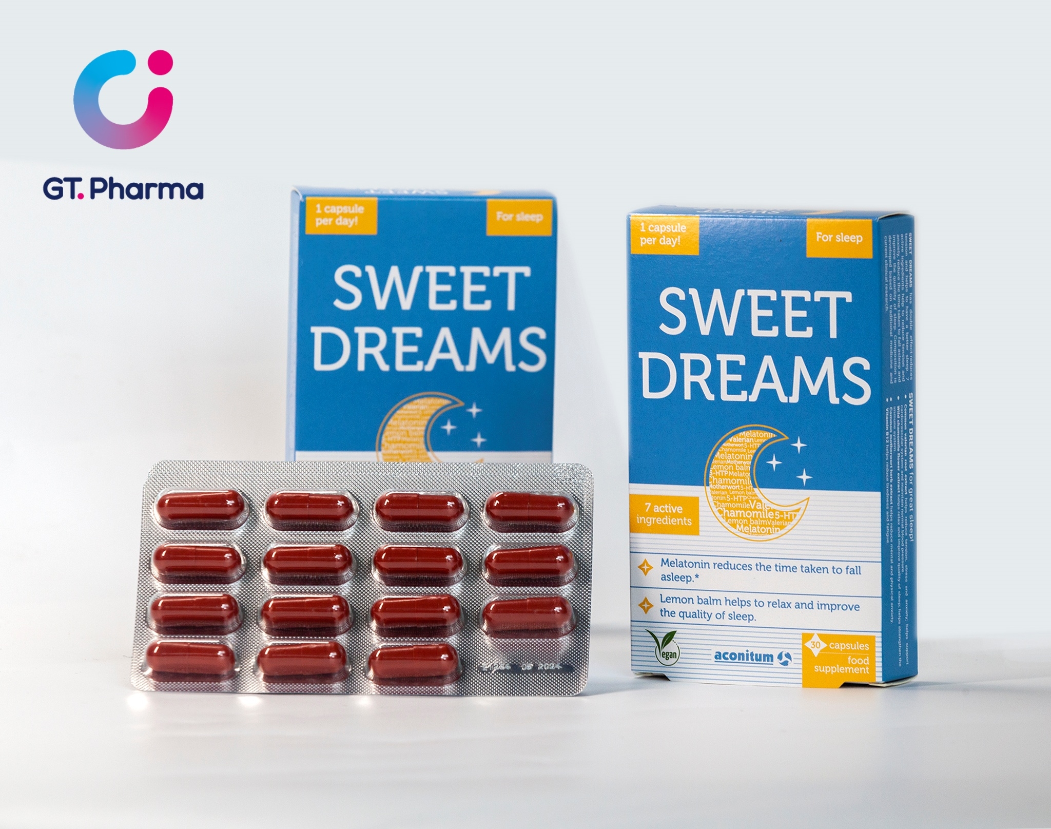 - Thành phần chính: Chiết xuất rễ Nữ lang (Valerlana officinalls), Chiết xuất hoa Cúc La Mã (Matricaria reculita), Chiết xuất Tía tô đất (Melissa officinalis), 5-hydroxytryptophan, Chiết xuất ích mẫu (Leonurus cardiaca), Melatonin, Vitamin B12.